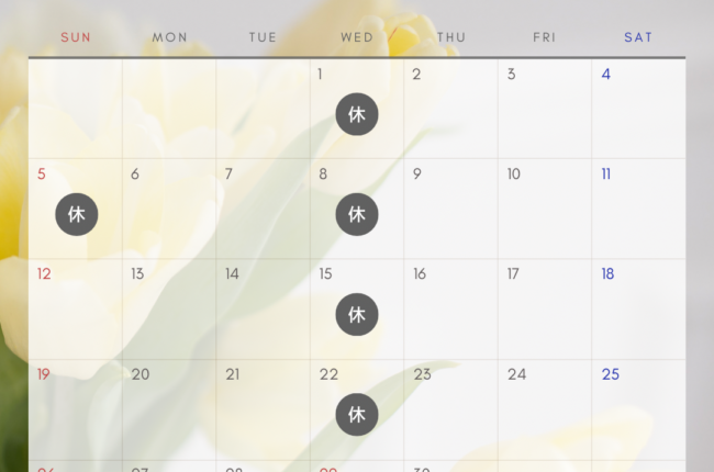 📅【3月スケジュールのお知らせ】3月の定休日は、変わらず毎週水曜日となります。なお、22日(日)のみ「13:00〜フリークラス」のみとなりますので、お間違えのないようお願いい